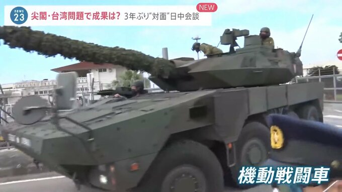 一方、台湾にほど近い沖縄県の与那国島。抗議する市民が駆けつけるなか、空港を出発したのは、輸送機で運ばれてきた「機動戦闘車」。戦車と同等の火力を持つ軍用車両です。