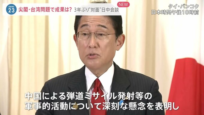 「尖閣諸島を含む東シナ海情勢や、中国による弾道ミサイル発射等の軍事的活動について深刻な懸念を表明し、台湾海峡の平和と安定の重要性を改めて強調しました。同時に安全保障分野の意思疎通の強化で一致をいたしました」