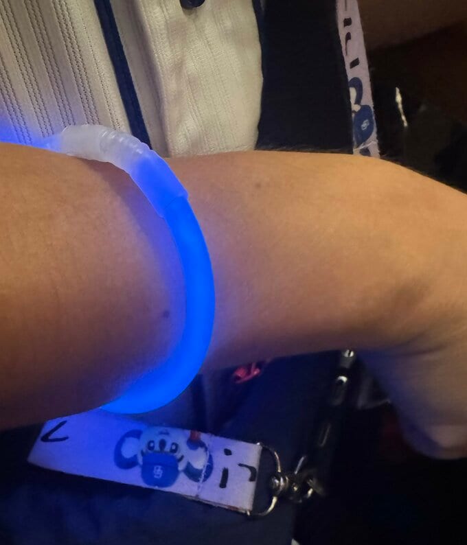 滝沢さんは、腕に巻いたブルーに光るケミカルライトの写真を添えて、「ケミカルライトは多くの自治体で可燃ごみです」と投稿。捨て方に迷うことの多いアイテムについて分かりやすく伝えています。