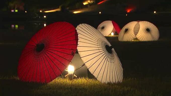 岡山市北区の後楽園では、「秋の幻想庭園」がきょう(18日)から行なわれます。それを前に昨夜(17日)、試験点灯が行われました。約160本の和傘が、幻想的に浮かび上がります。きのう午後5時過ぎから、約500の照明…