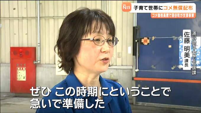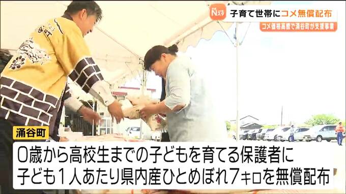 涌谷町が行う支援事業は、コメの価格高騰や物価高の影響を受けている子育て世代の家計を助けようと、0歳から高校生までの子どもを育てている保護者に子ども1人あたり、県内産のひとめぼれ7㎏を無償で配布するものです。