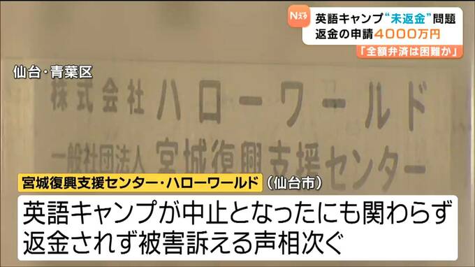 この問題は、仙台に事務所がある「宮城復興支援センター」と旅行会社「ハローワールド」が企画・運営した子ども向けの英語キャンプを巡り中止となったにも関わらず、保護者に返金されず被害を訴える声が全国で相次いでいるものです。