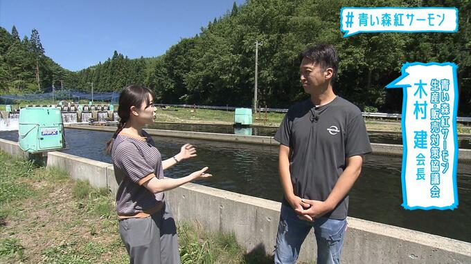 「青い森紅サーモンの最大の特徴は、病気になりにくく、非常に大きく成長することです。ですので、1年中新鮮で美味しい状態で出荷できるんです」