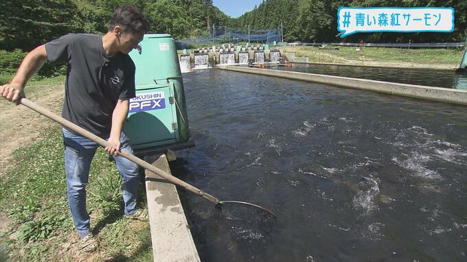 青森県新郷村にある養殖場には、約6000匹ものサーモンが元気に泳いでいます。生産者の方に、青い森紅サーモンの特徴をききました。