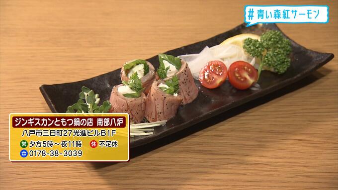 2025年2月にオープンしたジンギスカンともつ鍋の店『南部八炉』(青森県八戸市)では、青い森紅サーモンを使った多彩なメニューが人気を集めています。