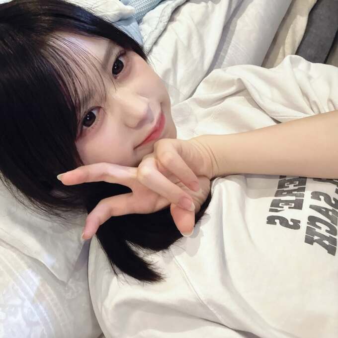 投稿には梶原さん自身が白いTシャツを着て、白とグレーの布団の上でくつろぐ様子が写った写真が添えられています。カメラに向かってピースサインをしながら穏やかな微笑みを浮かべており、リラックスした雰囲気が感じられます。