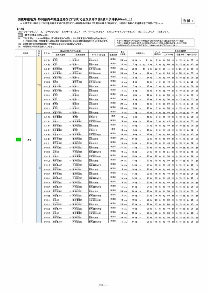 【お盆の交通情報 高速道路の渋滞予測2025】東名・東北道・常磐道・関越道…渋滞見込まれる区間・時間帯など一覧あり いつ・どこで混雑する?【NEXCO東日本・NEXCO中日本(首都圏・東日本・東北版まとめ)】 青森テレビ 2025年8月14日(木) 12:39 国内 【首都圏版・東名】 関東甲信地方・静岡県内の高速道路などにおける主な渋滞予測(最大渋滞長10km以上) 【東名】 東日本高速道路株式会社 関東支社/中日本高速道路株式会社 東京支社 「お盆期間の高速道路における渋滞予測について【首都圏版】」資料より