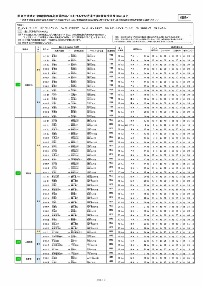 【お盆の交通情報 高速道路の渋滞予測2025】東名・東北道・常磐道・関越道…渋滞見込まれる区間・時間帯など一覧あり いつ・どこで混雑する?【NEXCO東日本・NEXCO中日本(首都圏・東日本・東北版まとめ)】 青森テレビ 2025年8月14日(木) 12:39 国内 【首都圏版・京葉道路・関越道・上信越道・長野道】 関東甲信地方・静岡県内の高速道路などにおける主な渋滞予測(最大渋滞長10km以上) 【京葉道路・関越道・上信越道・長野道】 東日本高速道路株式会社 関東支社/中日本高速道路株式会社 東京支社 「お盆期間の高速道路における渋滞予測について【首都圏版】」資料より