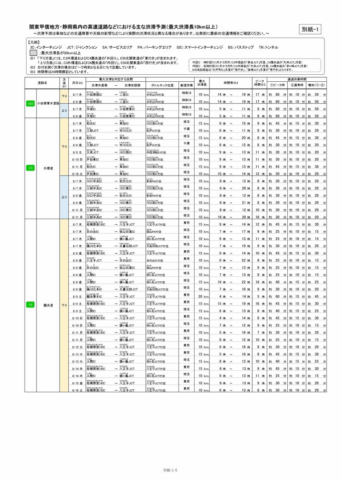 【お盆の交通情報 高速道路の渋滞予測2025】東名・東北道・常磐道・関越道…渋滞見込まれる区間・時間帯など一覧あり いつ・どこで混雑する?【NEXCO東日本・NEXCO中日本(首都圏・東日本・東北版まとめ)】 青森テレビ 2025年8月14日(木) 12:39 国内 【首都圏版・小田原厚木道路・外環道・圏央道】 関東甲信地方・静岡県内の高速道路などにおける主な渋滞予測(最大渋滞長10km以上) 【小田原厚木道路・外環道・圏央道】 東日本高速道路株式会社 関東支社/中日本高速道路株式会社 東京支社 「お盆期間の高速道路における渋滞予測について【首都圏版】」資料より