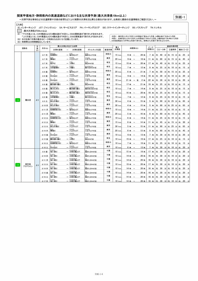 【お盆の交通情報 高速道路の渋滞予測2025】東名・東北道・常磐道・関越道…渋滞見込まれる区間・時間帯など一覧あり いつ・どこで混雑する?【NEXCO東日本・NEXCO中日本(首都圏・東日本・東北版まとめ)】 青森テレビ 2025年8月14日(木) 12:39 国内 【首都圏版・圏央道・東京湾 アクアライン】 関東甲信地方・静岡県内の高速道路などにおける主な渋滞予測(最大渋滞長10km以上) 【圏央道・東京湾 アクアライン】 東日本高速道路株式会社 関東支社/中日本高速道路株式会社 東京支社 「お盆期間の高速道路における渋滞予測について【首都圏版】」資料より