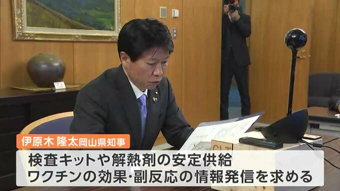 岡山県の伊原木知事は国に対し、「検査キットや解熱剤の安定した供給」のほか、「ワクチン接種率の向上に向けて、効果や副反応に関するさらなる情報発信」を求めました。