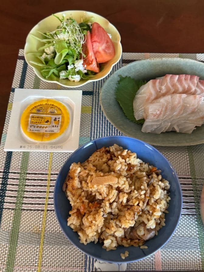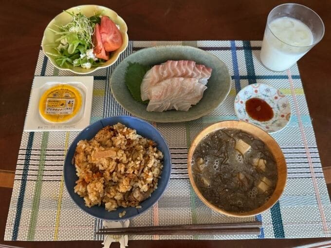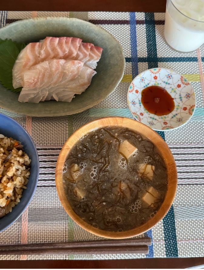 ブログに添えられた写真には、青い器に盛られたきのこごはんや鯛の刺身、もずくと豆腐の味噌汁など、色とりどりの料理が映し出されており、花田さんの食生活の一端を垣間見ることができます