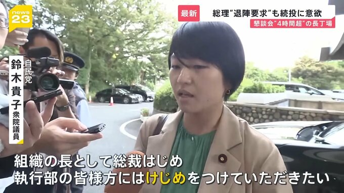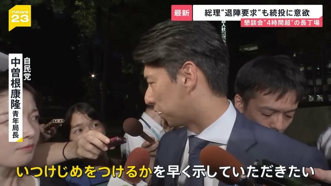 「いつけじめをつけるか早く示していただきたい。けじめをつける時期を示していただければ、こういった進退の議論は意味がなくなるわけで、次の『党を改革していくか』という話に挙党体制で挑んでいける」