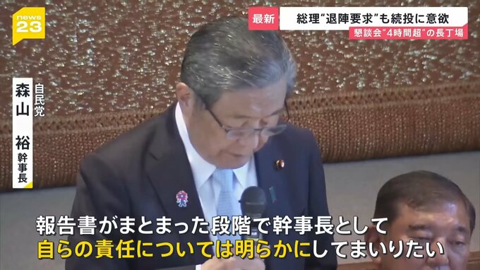 懇談会のなかで、森山幹事長は参院選を総括する報告書を8月中を目途にとりまとめる考えを示したうえで、自身の責任についても言及しました。