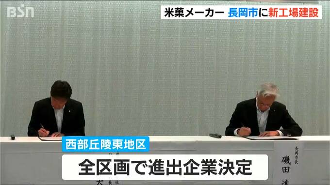 長岡市の米菓メーカー 岩塚製菓が市内の産業ゾーンに新たな工場の建設を決め28日、長岡市と進出協定を結びました。