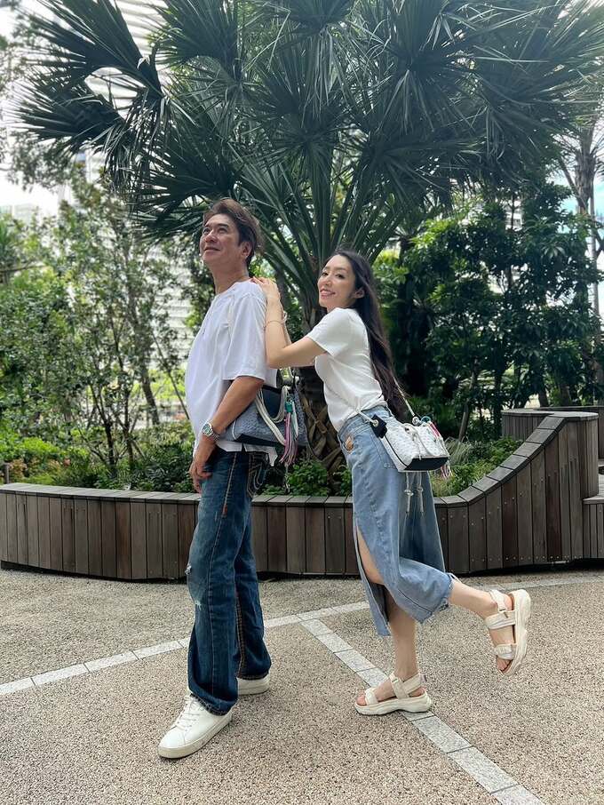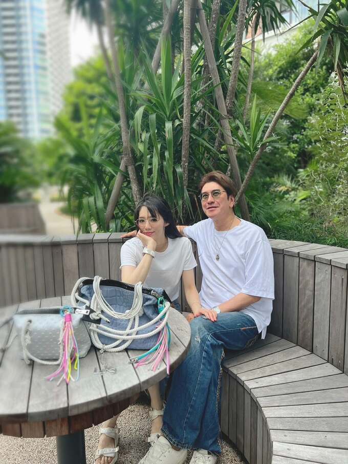 投稿された画像では、川﨑麻世さんと、妻の花音さんがベンチに腰掛け、肩を寄せ合って笑顔を見せる様子や、川﨑麻世さんの背中に、妻の花音さんが仲睦まじく寄りかかる姿が見て取れます。