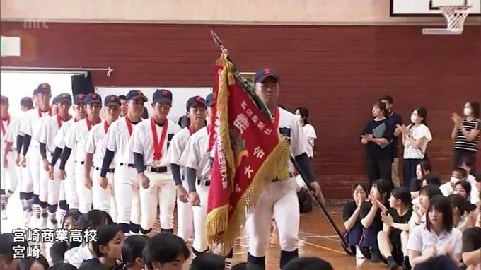 夏の高校野球宮崎県大会で61年ぶりとなる大会連覇を達成して甲子園出場を決めた宮崎商業ナインの壮行会が学校で行われました。先週行われた夏の高校野球県大会の決勝で、日南学園との激戦を制し優勝した宮崎商業ナ…