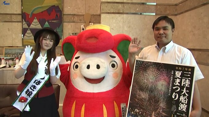 8月1日と2日に行われる三陸・大船渡夏まつりをPRしようと29日、キャラバン隊がIBCを訪れました。IBCを訪れたのは、大船渡つばき娘の佐川和希さんや、大船渡市のマスコットキャラクターおおふなトンなど3人です。202…