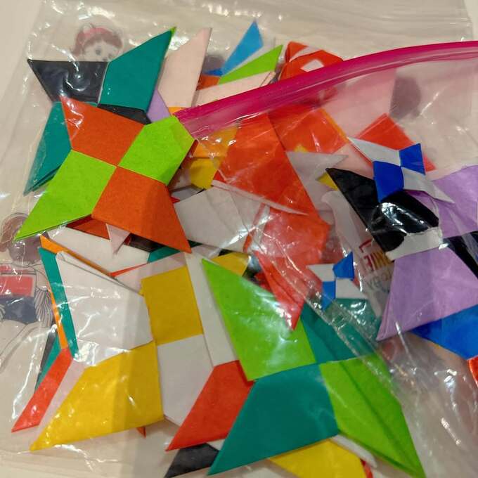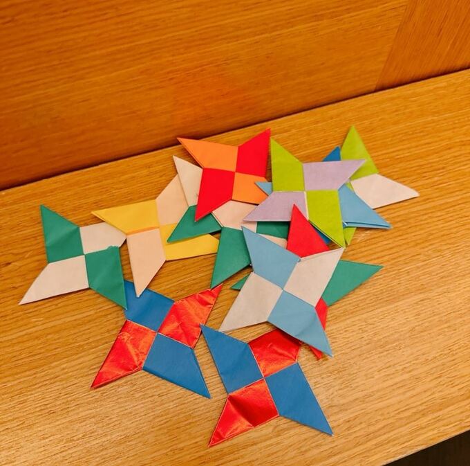 この投稿に、「わが家も手裏剣ブームありました」「色の組み合わせが無数にあるので、飽きないですね」「それにしてもお上手です手裏剣作り」などの声が寄せられています。
