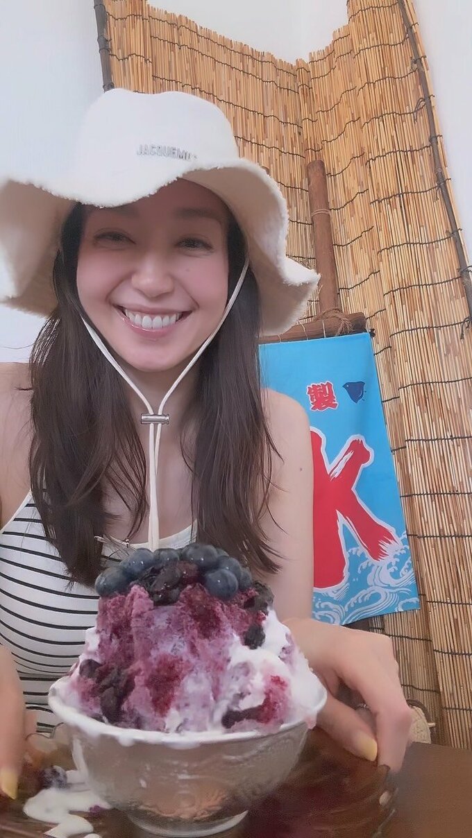 また、松島さんは、ドライブの途中で立ち寄ったとみられるかき氷店で、ブルーベリーをトッピングした紫色のかき氷を堪能。スプーンで氷菓を口に運ぶ笑顔の動画からは、夏の定番スイーツを楽しむ様子が伝わってきます。