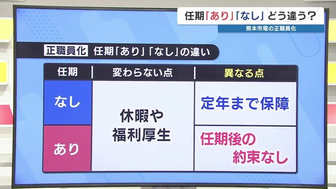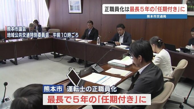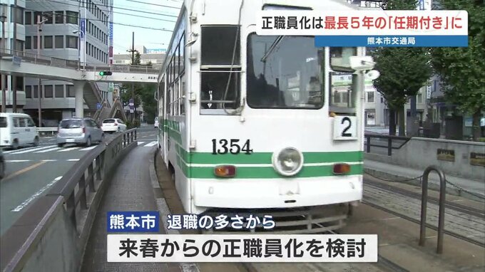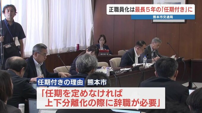 熊本市によりますと、もし任期を定めなければ、交通局が将来、上下分離化した時に職員はいったん辞職する必要があるためとしています。