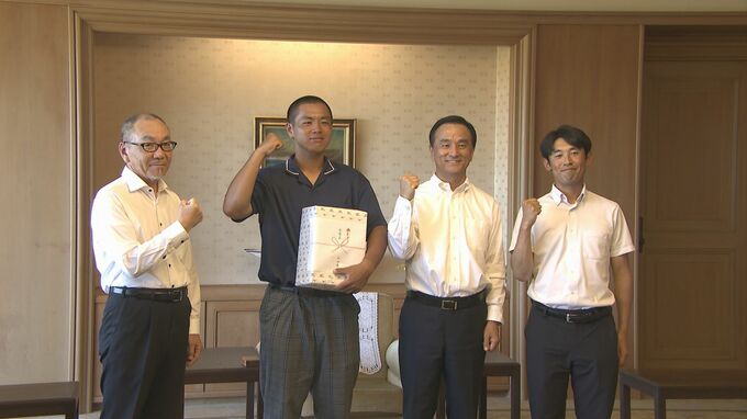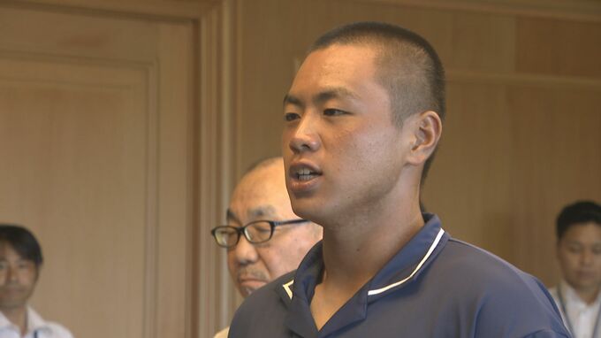 「8月から始まる甲子園大会では山口県の代表として恥じない戦い、そして目標である日本一をとって山口県に帰ってきたいと思います」