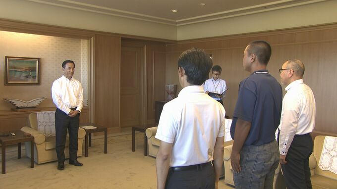 県庁を訪ねたのは高川学園野球部の松本祐一郎監督と遠矢文太主将、渡辺篤夫校長の3人です。