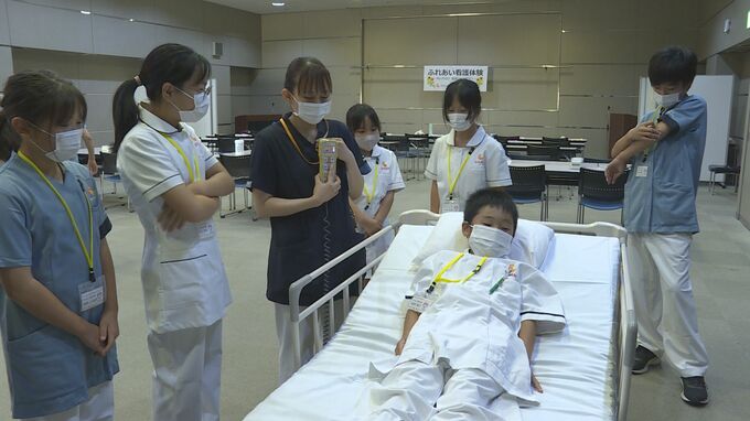 看護についての理解を深めてもらおうと29日、山口県下関市で「ふれあい看護体験」がありました。