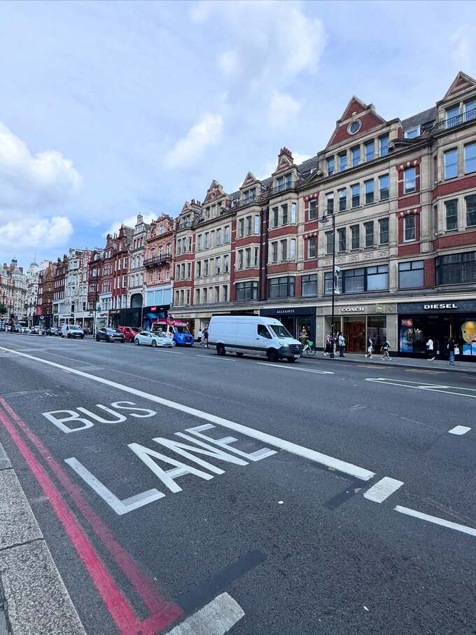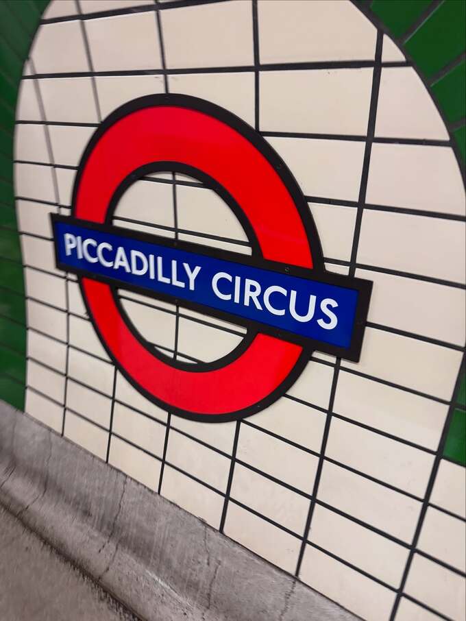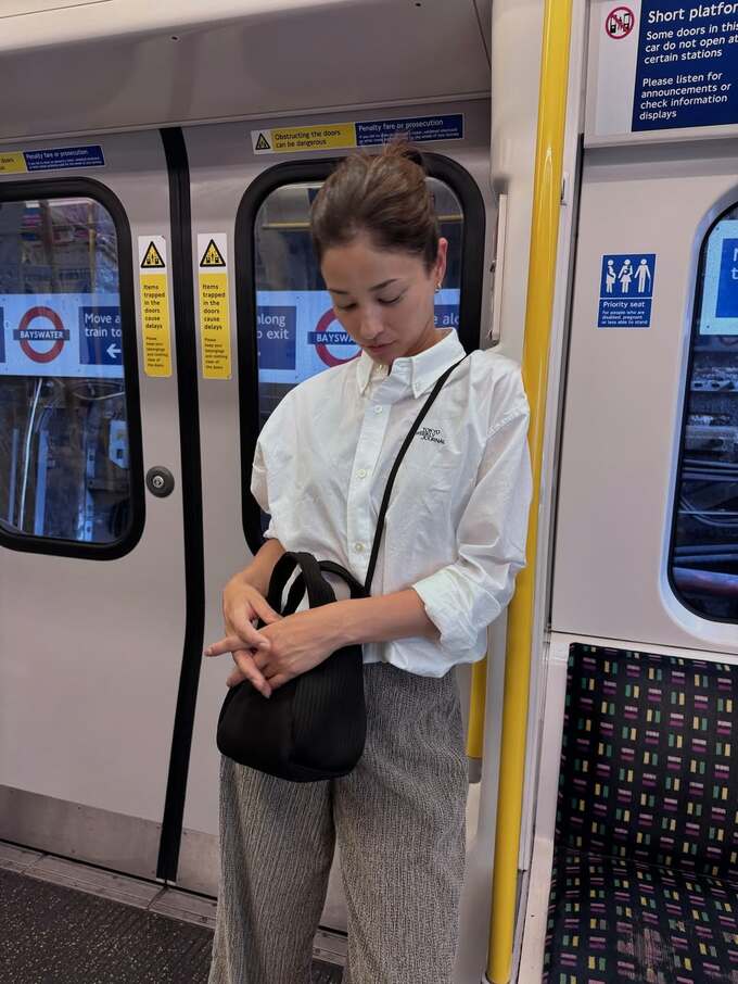 旅の写真からは、まずロンドンの地下鉄「ピカデリーサーカス駅」や「ベイズウォーター駅」を利用している様子がうかがえます。白いシャツとグレーのパンツという爽やかな装いで、地下鉄内での自然な表情の写真を複数枚投稿しています。