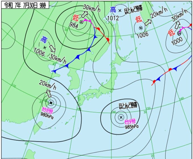 西日本から北日本の太平洋側では、台風9号を波源とするうねりが到達しており、波が高くなり、しける所があります。伊豆諸島では波の高さが5メートル、その他の太平洋側の広い範囲でも3メートルの高波となる見込みです。西日本から北日本の太平洋側では31日にかけて、うねりを伴う高波に注意が必要です。