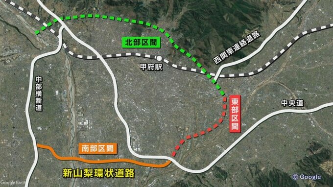 現在、甲府市と南アルプス市を結ぶ南部区間が開通しています。
