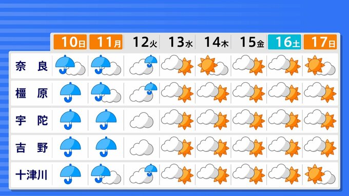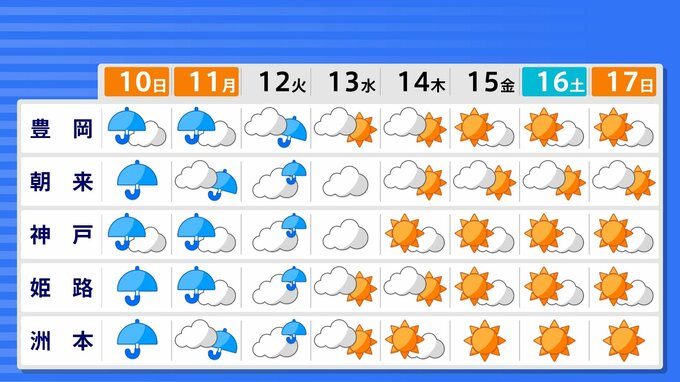 中国・四国地方の10日間予報10日(日)~17日(日)