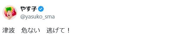 やす子さんは「津波 危ない 逃げて!」と、投稿。
