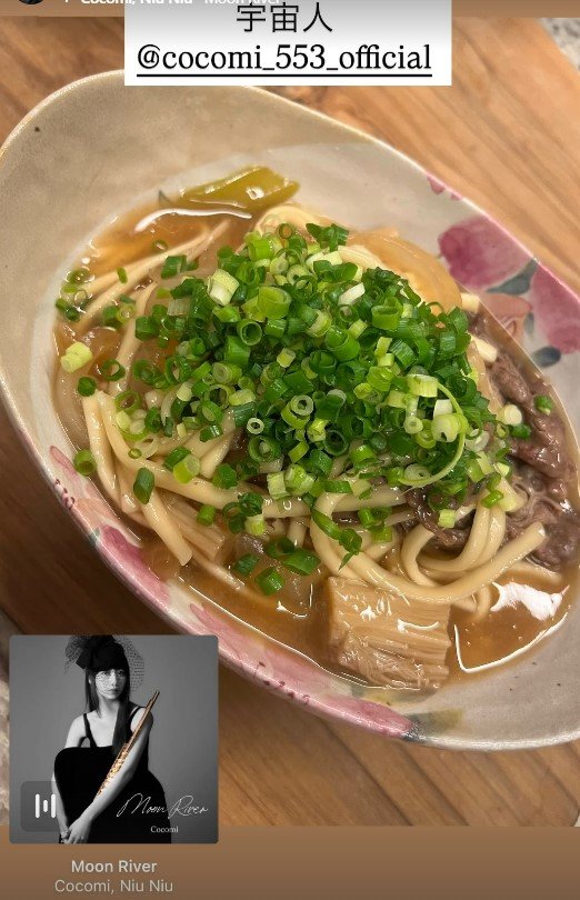 続く投稿で「宇宙人」と長女のCocomiさんの愛称と共に、SNSのリンクと料理の写真を投稿しました。