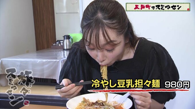麺類だけでもかなりの種類がありました。その中から白川アナは、『冷やし豆乳担々麺』を注文。