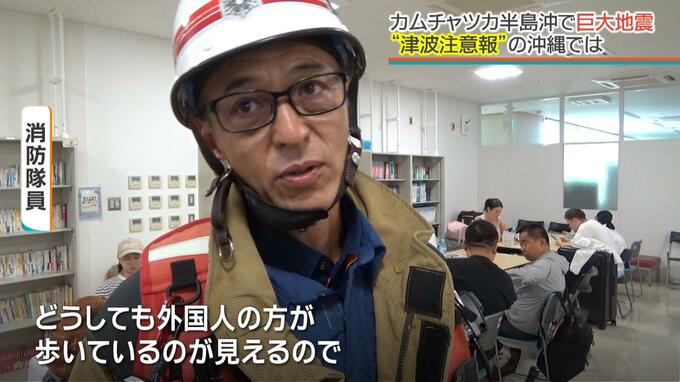 「沿岸はかなり避難されているかと思うんですけど、どうしても外国人の方が歩いているのが見えるので、防災無線でも日本語や中国語を流してはいるんですけれども、まだ少しいるかなって感じになります」