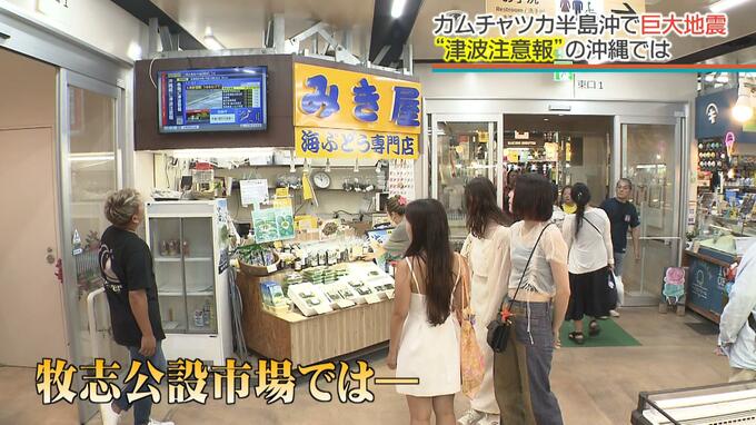 夏休み中の観光客で賑わう那覇市第一牧志公設市場でも、安全確保が呼びかけられました。