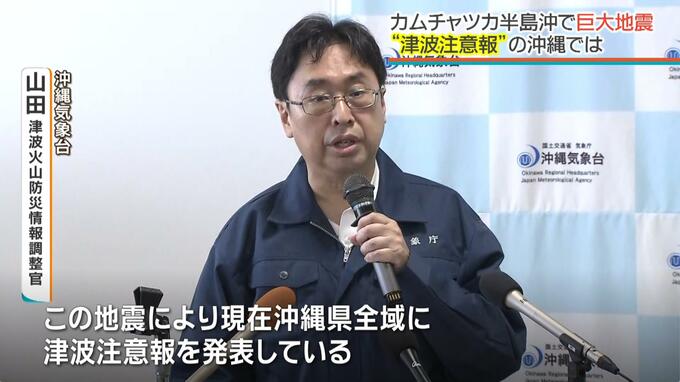 「この地震により、現在沖縄県全域に津波注意報を発表しております」