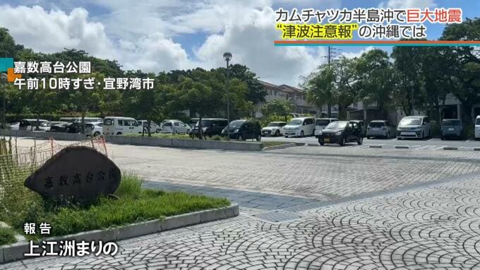 「宜野湾市の嘉数高台公園です。津波注意報が発表されて15分ほどが経ちましたが、普段と特別変わった様子はありません」