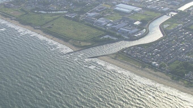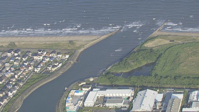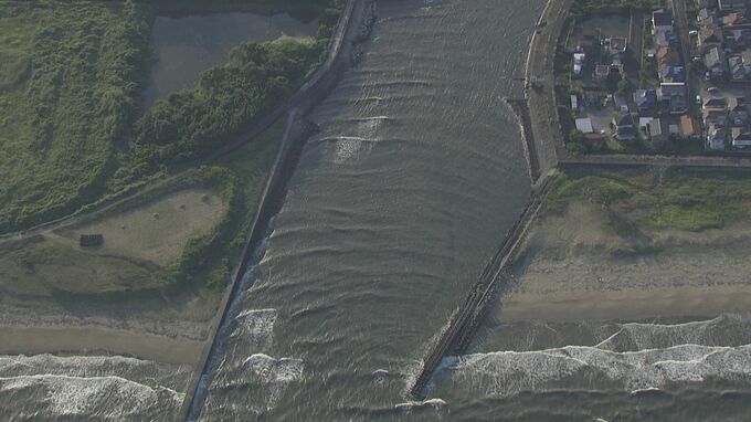 三重県鈴鹿市の上空からの映像では、津波かどうかはまだわかりませんが、鈴鹿市内の川を水が遡上している様子が確認できます。