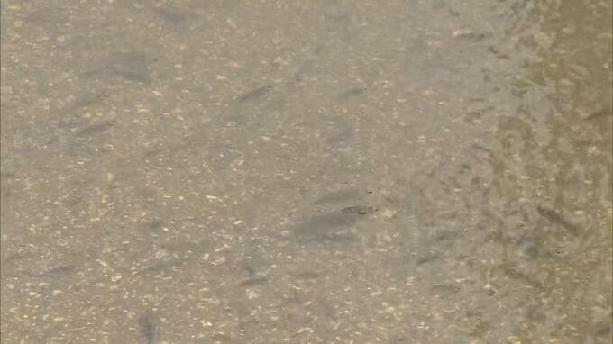 水が溜まった道路では、魚が泳いでいました。
