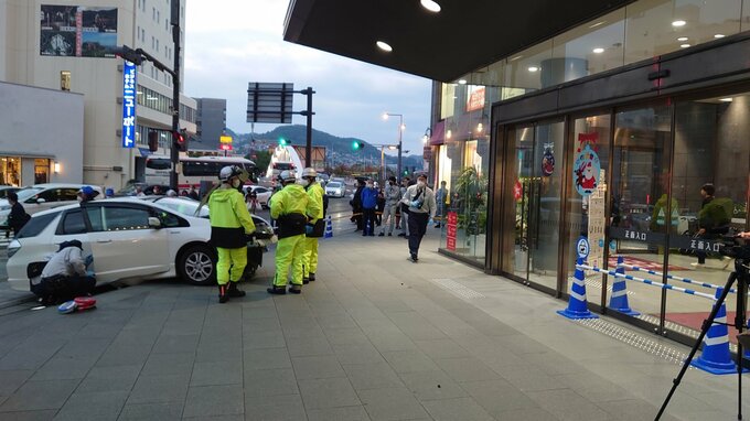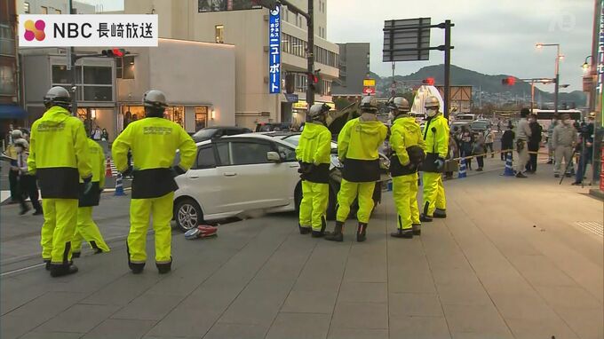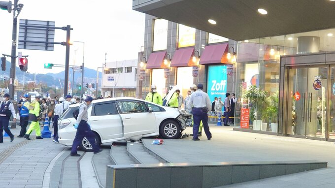 【速報】長崎市内の商業施設前で車が歩道に突っ込み高齢女性をはねる 病院へ搬送 重傷か To view this video please enable JavaScript, and consider upgrading to a web browser that supports HTML5 video 長崎放送 2022年11月18日(金) 17:06 国内 18日夕方、長崎市で乗用車が大型商業施設の玄関前の階段に衝突する事故がありました。 商業施設の玄関に白い車が乗りあげています。 18日午後5時頃、長崎市元船町のゆめタウン夢彩都前で、普通車が正面玄関前の階段に衝突しました。 警察によりますと、車を運転していたのは40代から50代くらいの男性で、信号待ちをしていた高齢女性をはねたと見られています。 女性の容体は不明ですが重傷とみられ、現在、病院に搬送されているということです。