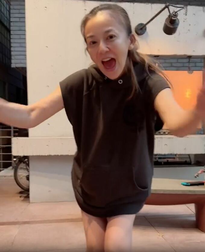投稿された動画には、華原さんが息子が撮影するカメラに向かって、お尻を向けフリフリする様子が映っています。息子のおもちくんが、楽しそうに笑う声も収められています。