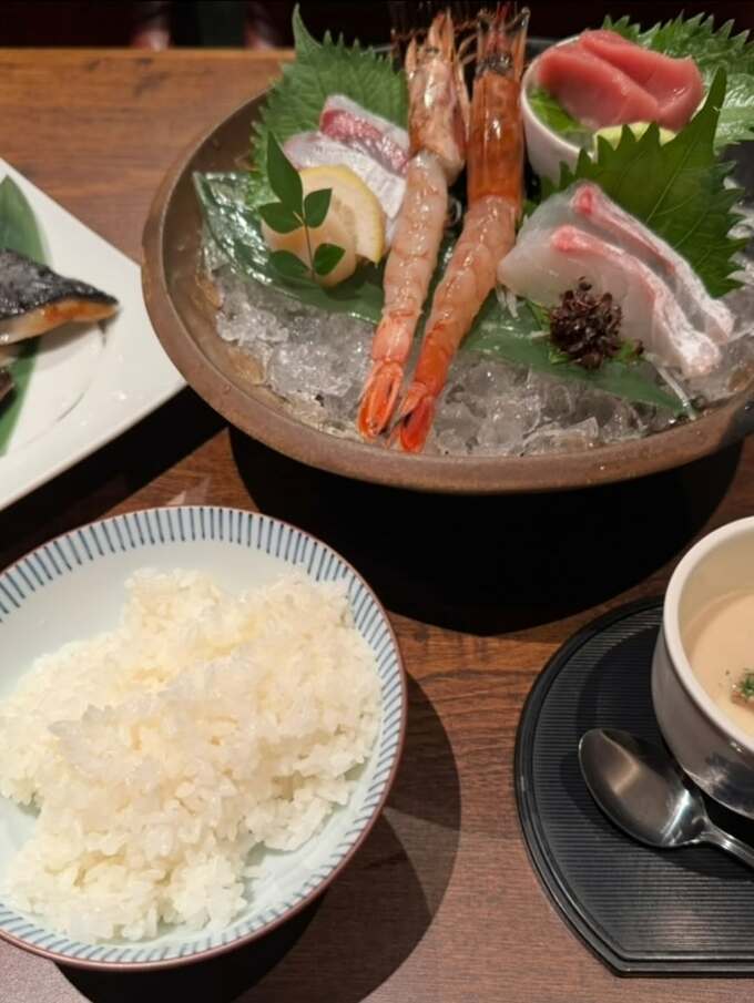 さらに、食事の写真も投稿。刺身の盛り合わせや焼き魚、茶碗蒸しなどが並べられ、親子で美味しい食事を楽しんだ様子が伝わってきます。