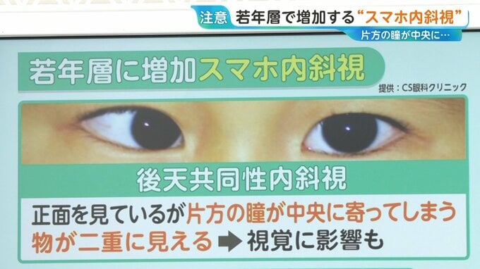 『スマホ内斜視』と呼ばれる「後天共同性内斜視」。