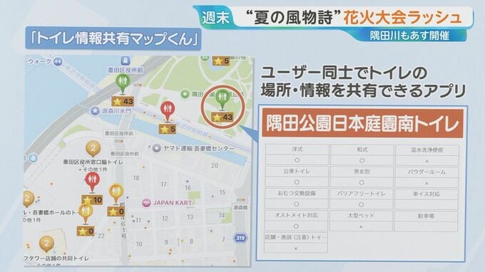 トイレの場所を調べるのには「トイレ情報共有マップくん」のようなアプリを利用するのも効果的です。