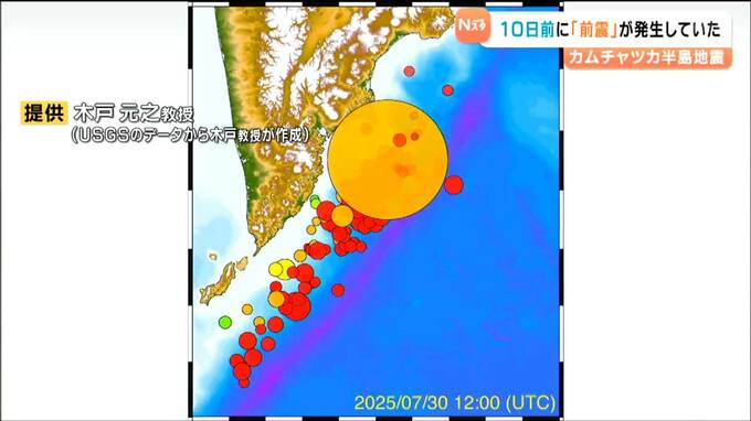 30日にカムチャツカ半島近くで発生し、地震の規模を表すマグニチュードが8.8となった今回の巨大地震について、専門家は、10日前に「前震」が発生していたと指摘しています。