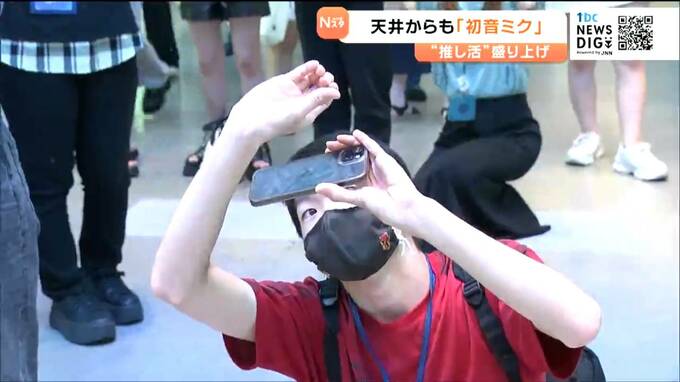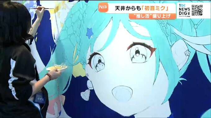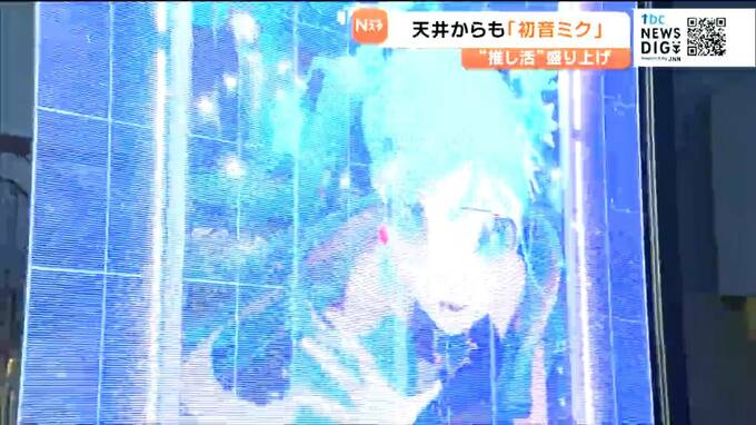 大型LEDに映し出されたのはバーチャルシンガー初音ミクの立体映像です。仙台駅東口にある、仙台デザイン&テクノロジー専門学校の1階ロビーでは、1日から市内で開催される初音ミクらのライブイベントを盛り上げようと、専門学校生が制作した映像やペイントが展示されています。