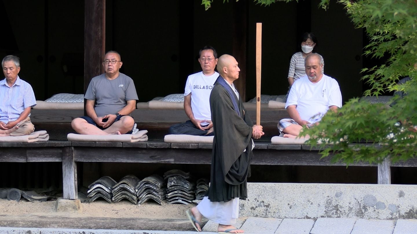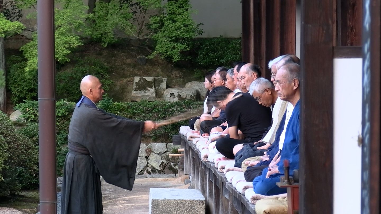 岡山県総社市の宝福寺で、早朝から座禅を組む夏の恒例行事「暁天(ぎょうてん)座禅」が始まりました。