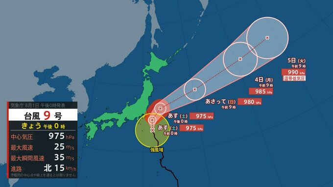 台風第9号(クローサ) 最新進路予報(実況・予報)